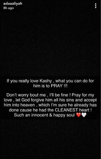 Aliya confirmed in a Snapchat post, that Barry Jhay is not responsible for the death of Kashy Godson and beckoned on people to stop sending death threats to him and his family, hence he is innocent.