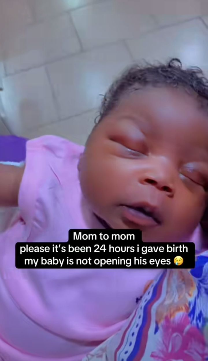 ”Mom to mom,it’s been 24 hours I gave birth. My baby is not opening his eyes”, The video’s caption reads.