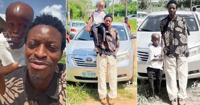 In a video which was shared via his official TikTok account @walmart1805, the happy son lifted his father and placed him on his shoulder.