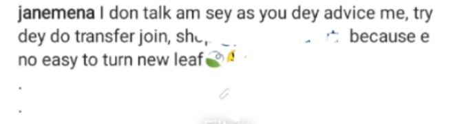 In a recent post which she shared via Instagram, Janemena told those advising her to change her ways, that it is not easy to turn a new leaf.