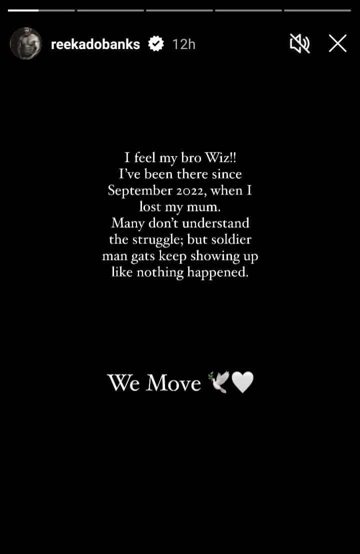 “I feel my bro Wiz!! I’ve been there since September 2022, when I lost my mum. Many don’t understand the struggle; but soldier man gats keep showing up like nothing happened.