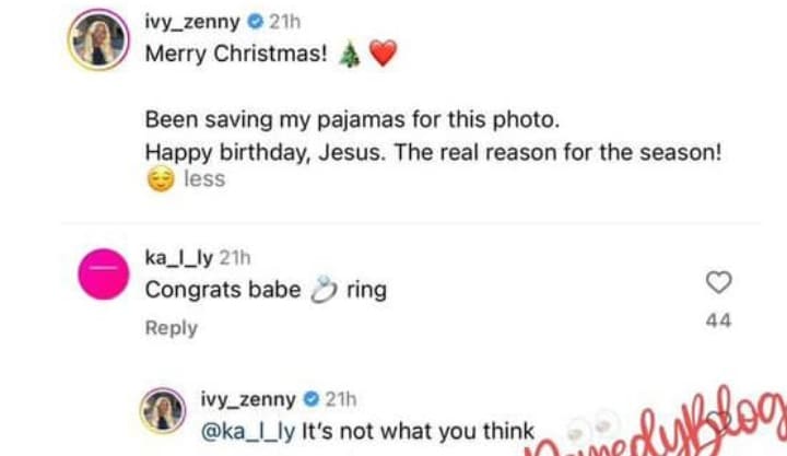 It would be recalled that rumours began making the rounds online that she was engaged after she was spotted wearing a wedding ring while sharing her Christmas photos.