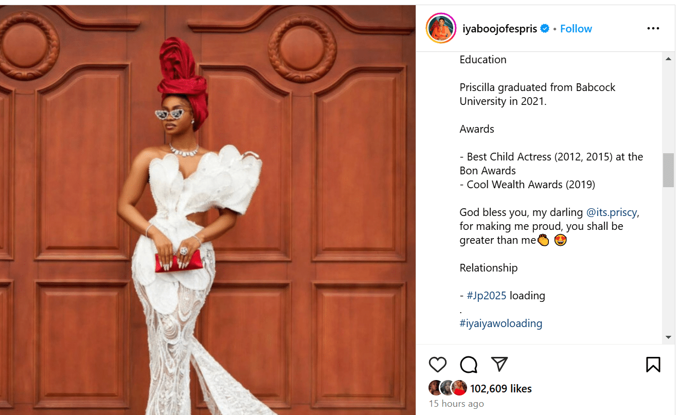 Iyabo Ojo beams with pride as she shares her daughter, Priscilla Ojo’s impressive achievements at 23