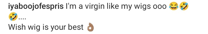 According to her, she’s very much a virgin like the wigs that she sells.