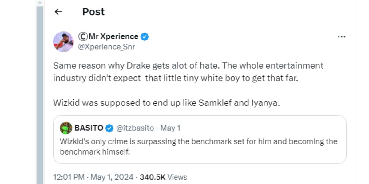 Reposting it, @Xperience_Snr noted that Wizkid was expected to follow in the footsteps of Iyanya and Samklef, meaning that their careers had fallen short of expectations.