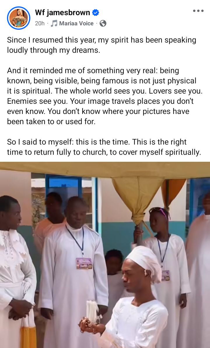 In the viral clips, James Brown was seen participating in church activities, drawing mixed reactions from social media users who expressed surprise, criticism and cautious support over his decision.