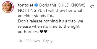 Don’t release nothing it’s a trap, we release when it’s time to the right authorities..❤️❤️” Tonto wrote.