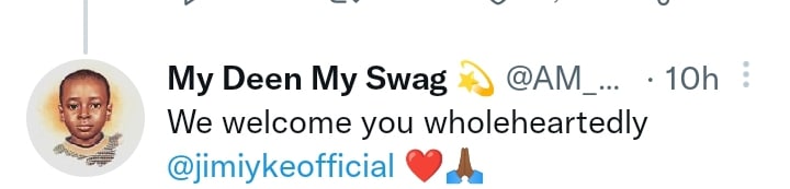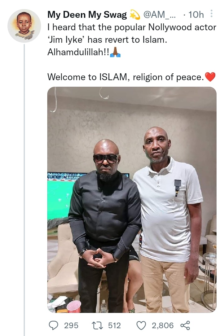 ”I heard that the popular Nollywood actor Jim Iyke has revert to Islam. Alhamdulillah! Welcome to Islam, religion of peace. We welcome you wholeheartedly,” the Twitter user wrote.