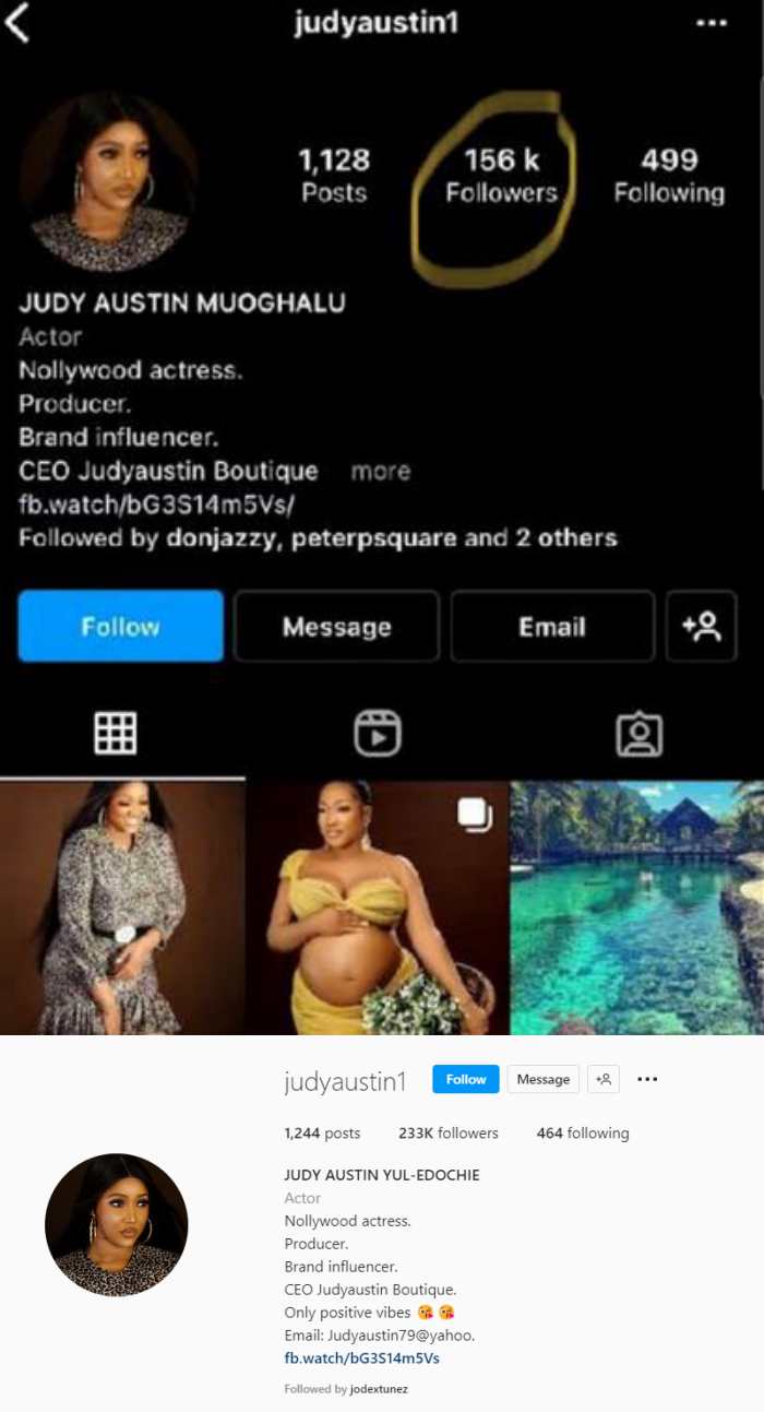 ‘Judy Austin Yul-Edochie’ is now boldly written on the actress’s Instagram as seen in the latest changes on the page.