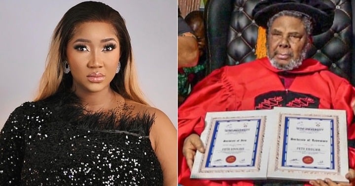 The actress had joined her husband, Yul Edochie, in congratulating Pete Edochie who bagged two Doctorate degrees in one day.