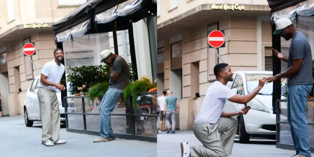 He shared the exciting news on Instagram with a series of photos capturing the romantic proposal moment outside a restaurant.