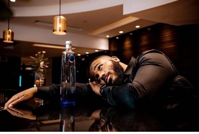 Kiddwaya in his new shared Instagram picture was seen placing his head on a table and he was staring at one of the brands he’s promoting, Ciroc Vodka.