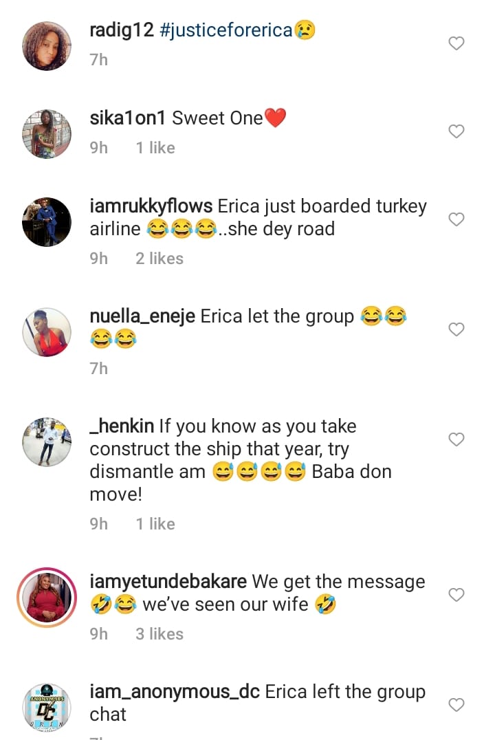nonianumudu wrote: “Na wa ooh, after everything with Erica…I’m waiting for this year BBN breakfast”