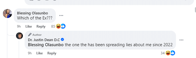 Godwin Rachael Ozioma commented: “Dr. Justin Dean D.C she will always be your nightmare