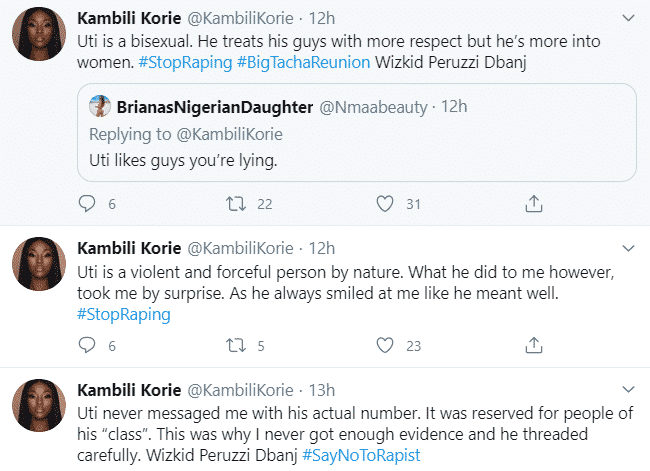 “He is bisexual and treats men with more respect” – Lady says as she accuses Uti Nwachukwu of raping her