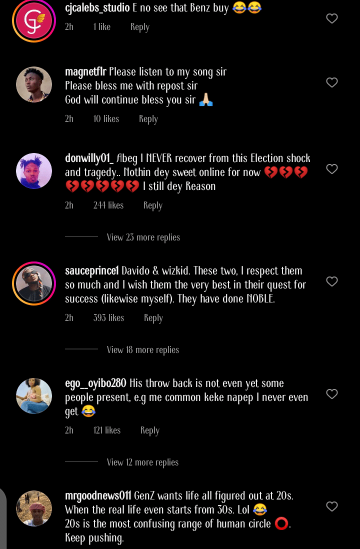 donwilly01_ commented: “Abeg I NEVER recover from this Election shock and tragedy.. Nothin dey sweet online for now.”