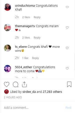 Many fans and colleagues have taken to the comment section of her post to congratulate her for getting the new deal.