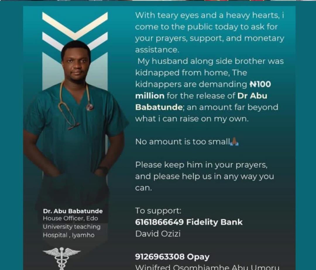 The kidnappers reportedly demanded ₦100 million as ransom. During the ordeal, the younger brother was allegedly k!lled after attempting to escape. The doctor was later released after millions of naira were paid.