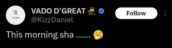Kizz Daniel recently posted a tweet on his X page stating, “This morning sha ……. 🥱.”