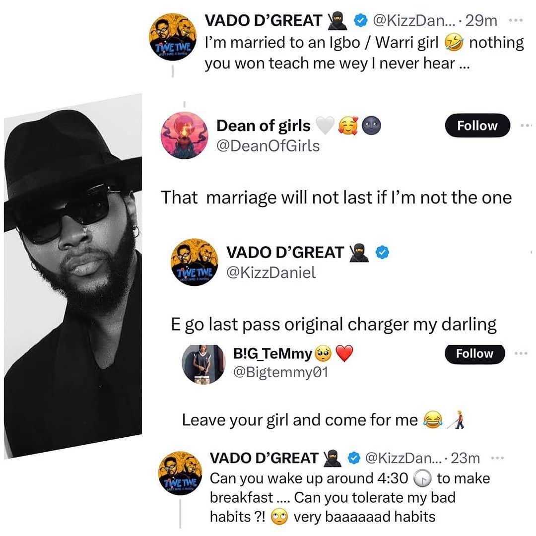 Kizz Daniel made this revelation during banter with one of his female fans who showed interest in him and shot her shot at him.