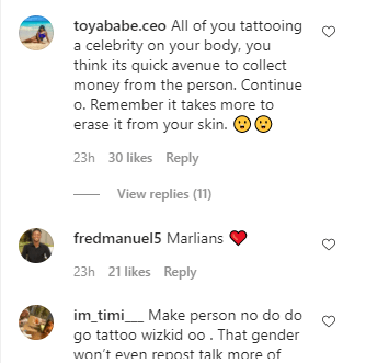 “instead of you to draw bobrisky and collect money ??♀️,” a fan wrote of Mandy’s choice of getting a tattoo of Naira Marley.