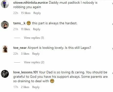Sadly, the vacation has come to an end and the singer who left Nigeria for the United States of America shared a video of her father seeing her off at the airport.