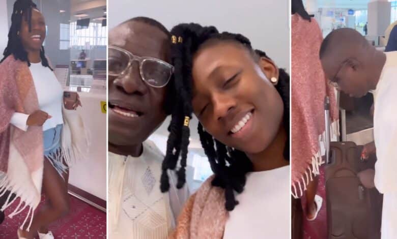 Korra Obidi hugs dad tightly, breaks down in tears as she jets back to the US (Video)