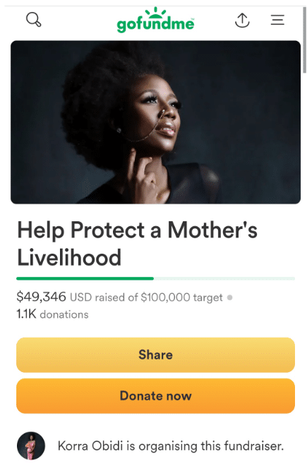 Popular Nigerian dancer and mother of two, Korra Obidi, has experienced an overwhelming response to her GoFundMe appeal for financial assistance in her ongoing legal dispute with her ex-husband, Justin Dean, raising over $49k.