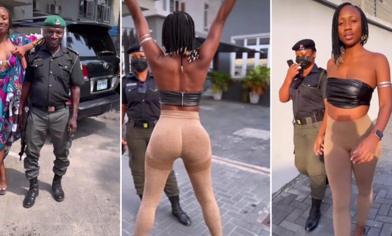 One of the videos showed the officer resting her hand on his shoulder. She further gave out gentle dance moves while the security agent gazed.
