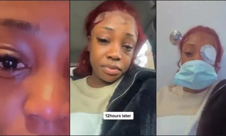Young Nigerian lady shares her painful experience at the hands of an eyelash extension that almost cost her one of her eyes.