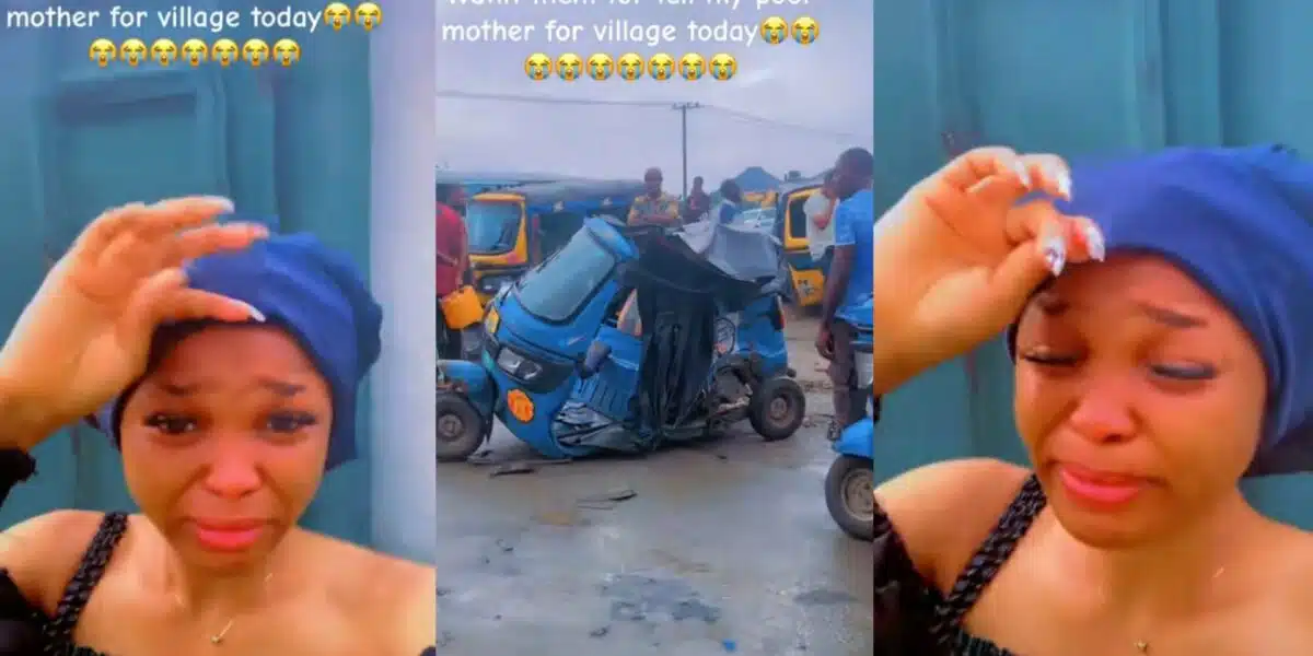 Lady sobs with gratitude as she escapes a tragic tricycle accident without any injury.