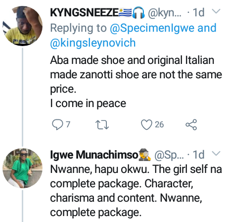 She added that her sister-in-law is a “complete package with good character, charisma and content” after a Twitter user implied that Igbo ladies are superior to others.