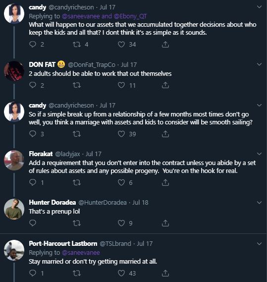 The young lady is of the opinion that marriage licences should have expiration date like every other state license, to give people the option to part ways or renew.