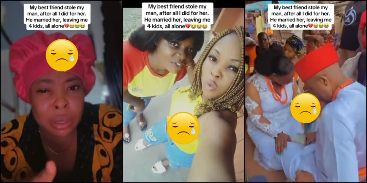 A lady calls out her bestie for allegedly snatching her man, as she narrates the guy left her with four kids to marry her bestie.