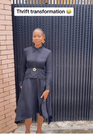 Lady causes buzz as she buys cheap Okrika dress, transforms it into stylish outfit