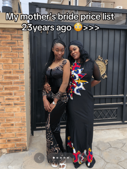 A Nigerian lady has stirred up reactions on social media after sharing the bride price list her father received when he married her mother 23 years ago.