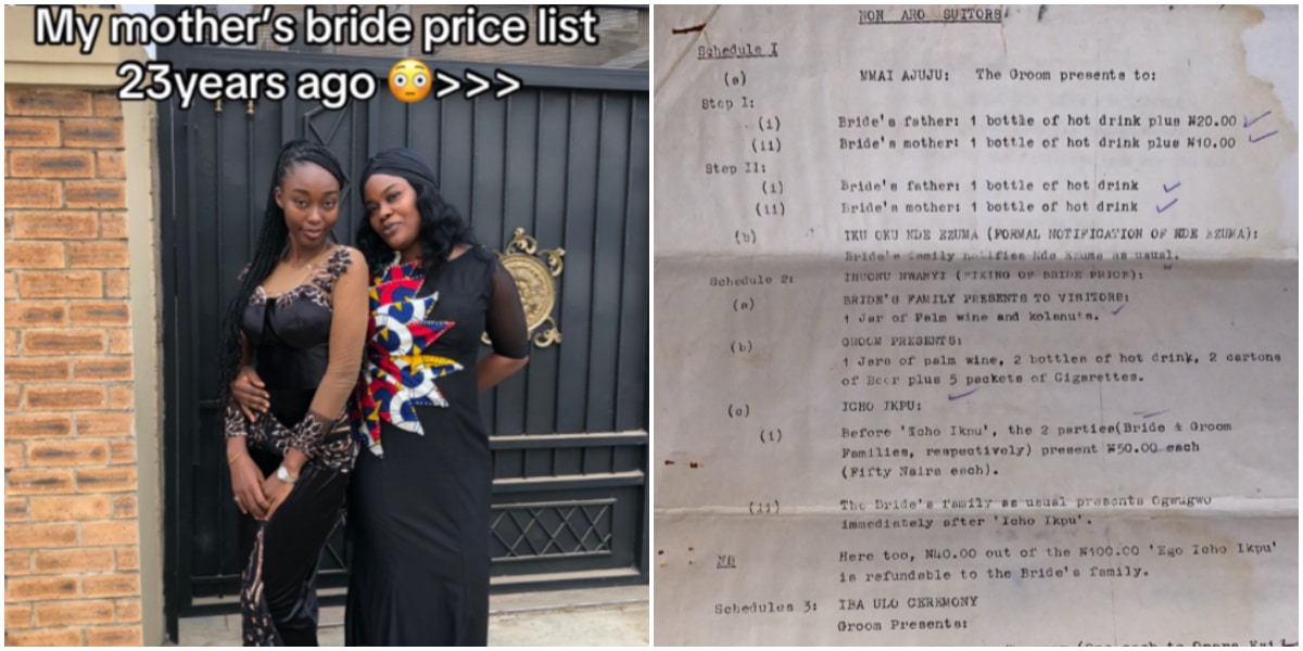 A Nigerian lady has stirred up reactions on social media after sharing the bride price list her father received when he married her mother 23 years ago.