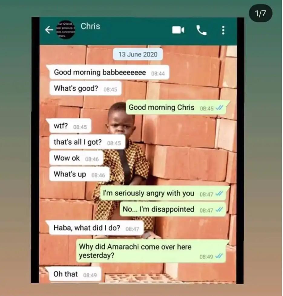 A screenshot of the conversation between the two revealed that the boyfriend assisted his ex with N150k for her house rent whie he has never given her such amount.