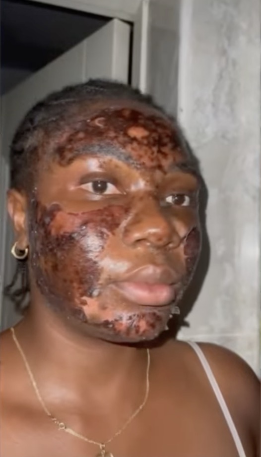 A young Nigerian lady has cried out after suffering severe facial burns from a skincare vendor’s chemical peeling procedure meant to treat her acne.