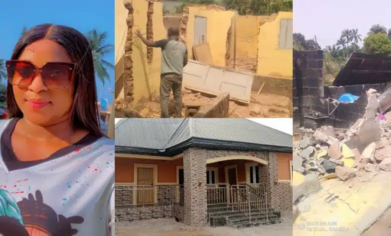 A lady has razed down her mother’s old, dilapidated house and erected a beautiful, cozy looking bungalow in its place.