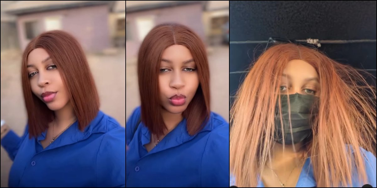 The pretty lady shared a video capturing her wearing the wine-colored bone straight.