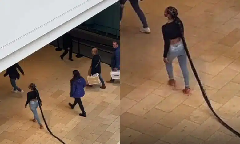 Lady draws stares at mall as she walks majestically with long braids (Video)