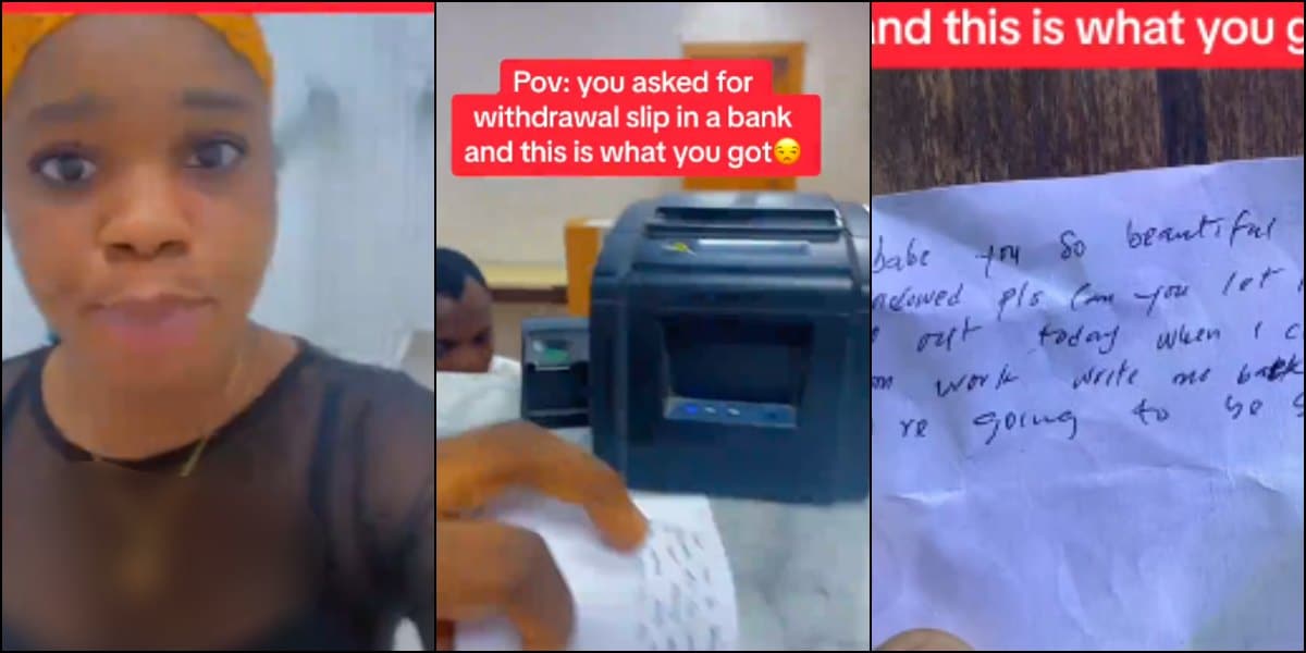 Lady exposes note she received from bank staff after asking for withdrawal slip