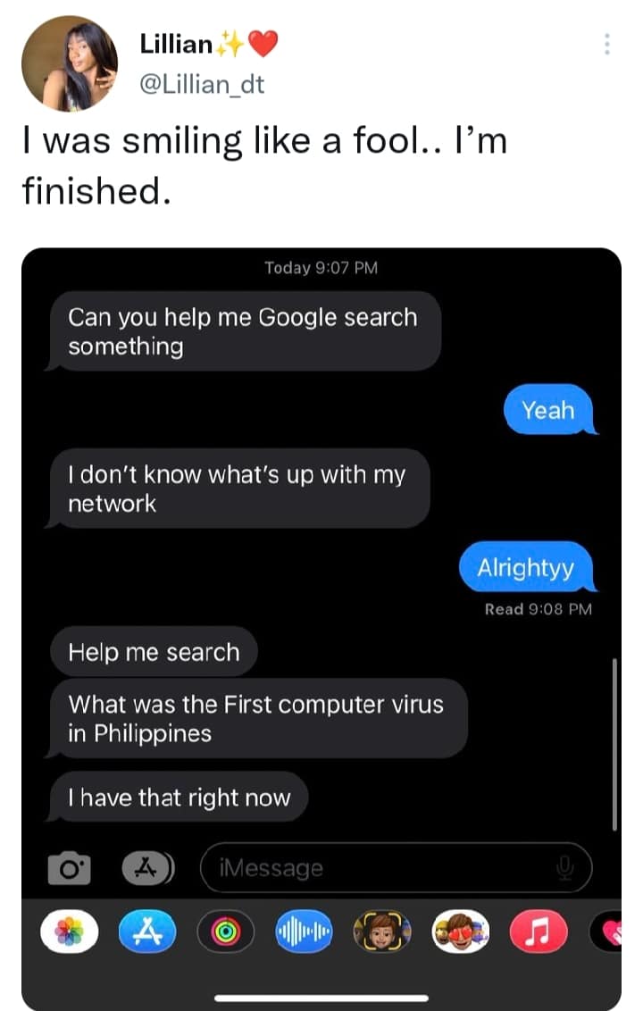 When Onyinyechi agreed to help him, he asked her to search for the first computer virus in the Philippines. The man’s request left Onyinyechi smiling and impressed.