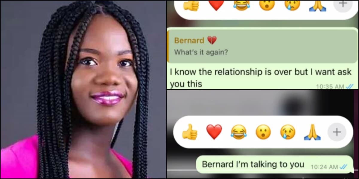 The lady known as @miriamhayford0 on Tiktok took to the platform to share the chats which showed the painful conversation she had with her ex boyfriend.