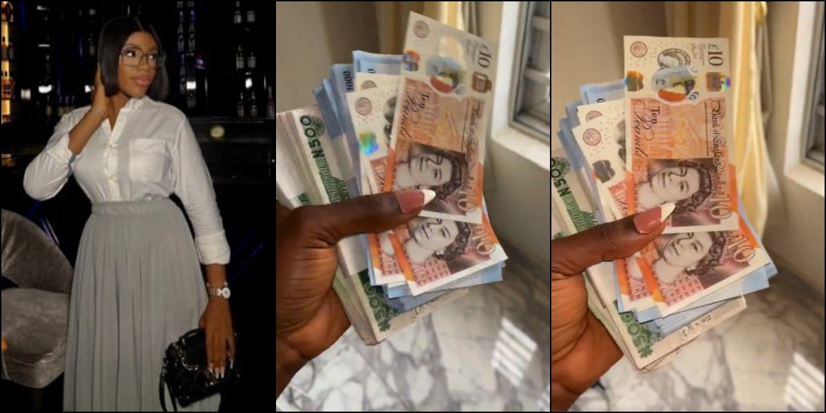The lady revealed that she was surprised to see that pounds was among the bundles of money, as she hadn’t check it when she was given.