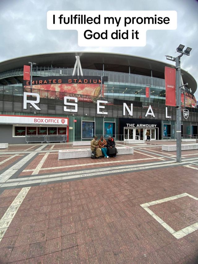 A UK-based Nigerian lady fulfils a heartfelt childhood promise to her parents, by taking them to a renowned English premier league sports arena, Emirates Stadium.