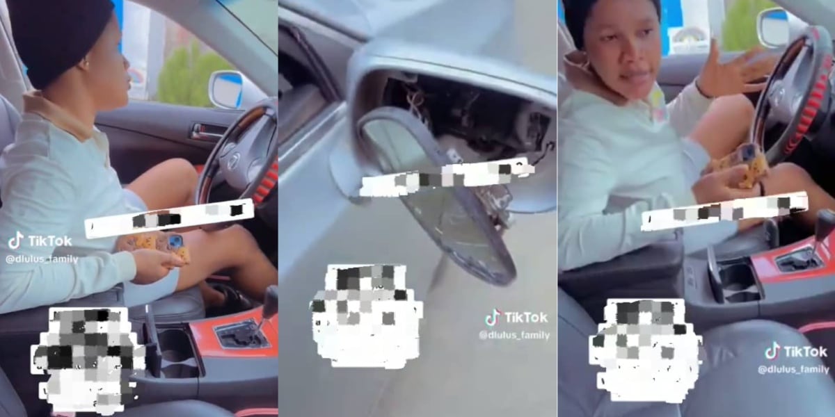 A Nigerian lady has elicited reactions online after blaming her husband for buying her a big car which she carelessly bashed.