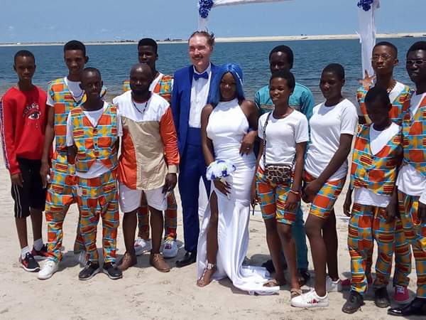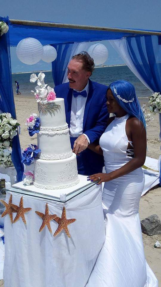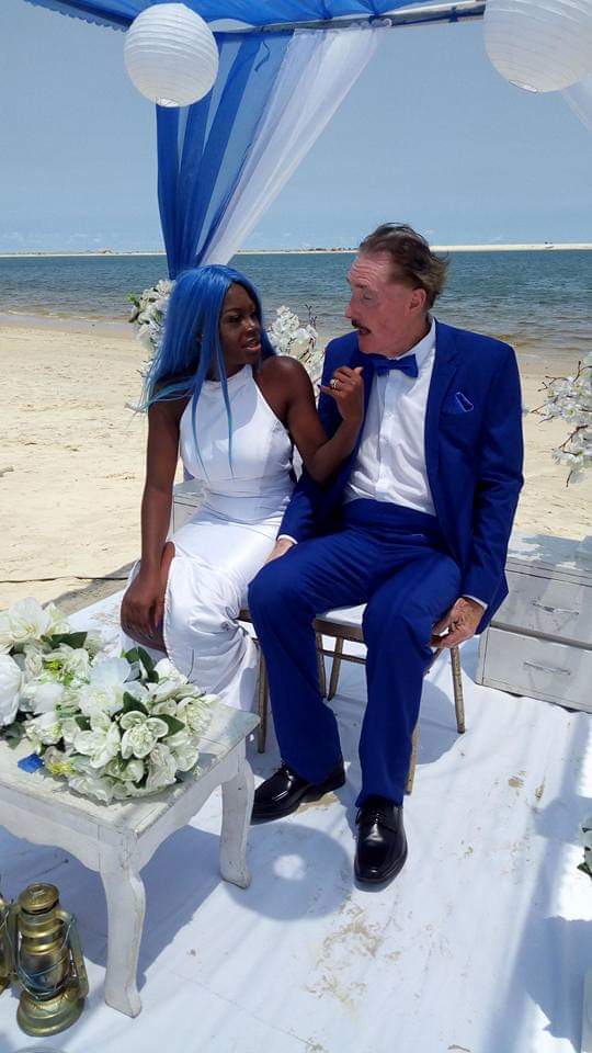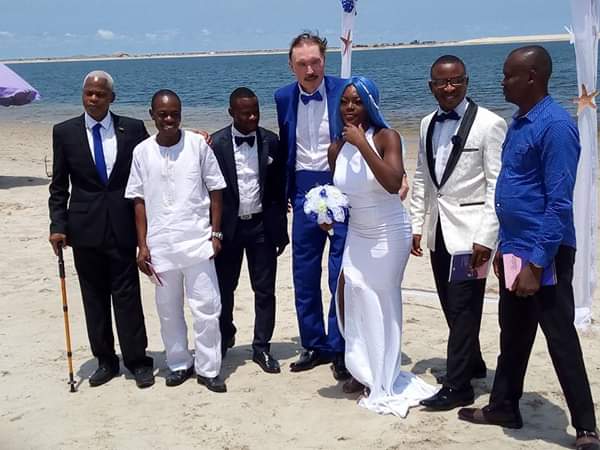 Lady gets married to an elderly White man at a beach in Lagos (photos)