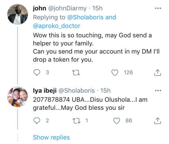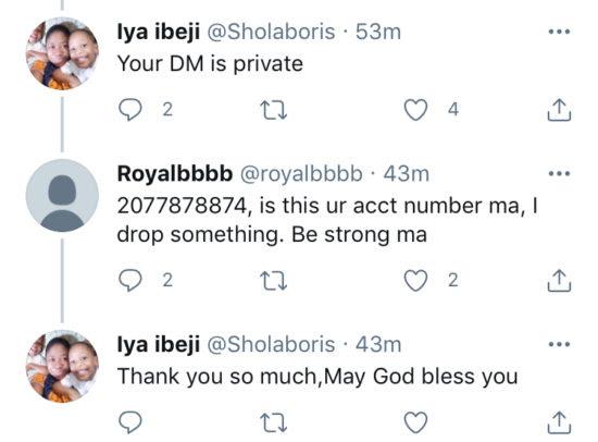 This move, however, opened doors to more blessing for Shola as more Twitter users offered to help with whatever they have in cash form.